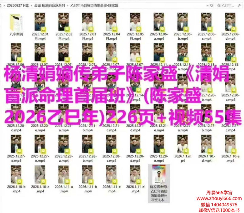 杨清娟嫡传弟子陈家盛《清娟盲派命理首届班》(陈家盛2026乙巳年)267页+视频55集!!! 高清彩色版!!