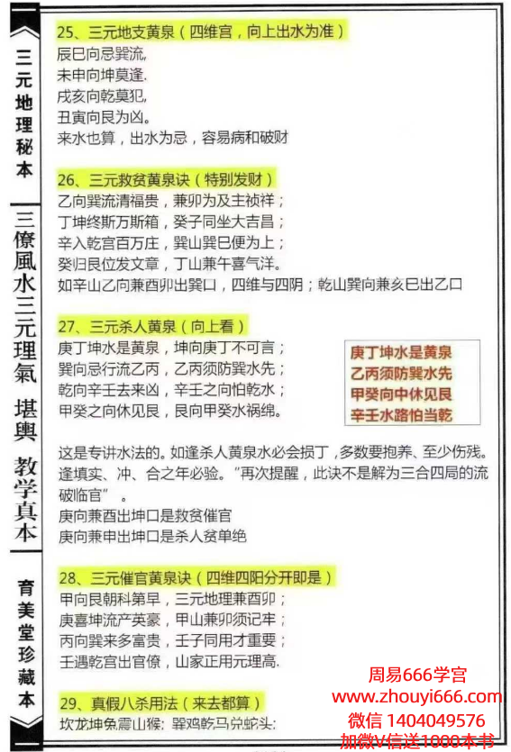 三元地支黄泉、三元救贫黄泉诀