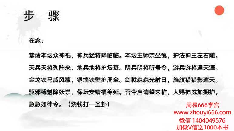 仅课件: 民间中,大家作为法师,常常担心邪祟入宅,担心做法事影响家人,或是担心坛场被邪师邪法攻害。而此法,即是解决之秘!此法穿宅变庙,请得雷部众神驻家(坛)。随后再请当方土地,土地兵马驻家,在以穿宅秘法,将宅子变为庙宇殿堂,鬼神视之,均为神仙庙宇,邪师邪法不敢侵犯。在以此法,可稳固坛场,如大树根茎般扎根落地(很多人不会正确立坛,安坛会坛不稳,会做法不灵,打卦不准,冤亲债主抢香火,此法可解决)。以此法变宅,家宅变仙人居所,人若居其中,百福具臻,邪法不进,冤亲不侵!雷神护卫。