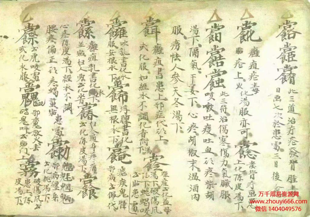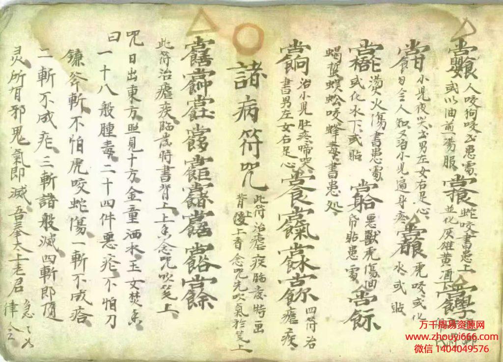 灵枣咒、水咒、白芨咒、诸般之症画符咒、诸般邪症画符咒、符式五十八道、诸病符咒、治一切眼疾方、疮毒符、天干丹符十道、疗疟疾桃符咒、消化诸般梗喉符咒、鱼刺咽喉咒、除邪符、失魂符咒、镇宅符、水喷邪病咒、角印法、真重丧法、治病符道、外症十八道、天师五雷咒、治百病符、解冤咒、催生符、净宅龙蜀经、…消化肿毒灵符神咒、妇人抽症方、收肿毒咒、吹肿毒咒、治疮咒、发背神方、水喷疮咒、肿毒痄腮符咒、收肿毒疙疸法、催生八马神符咒、九天玄女催生咒、神效疟疾咒、疮神咒、消肿毒符咒、治无名肿毒、洗眼昏花法、治疾符咒、宋桂咒、送鬼病咒、伏虎咒、吹乳成疮咒