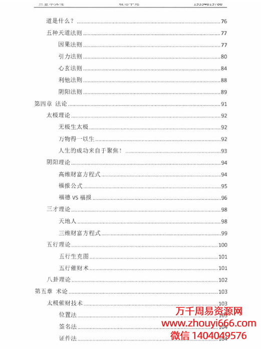 书里的内容非常庞杂,里面有很多真知灼见,瞬间可以提升你的认知维度。比如对道德经第一章的解读,是世面上闻所未闻的视角,绝对让你耳目一新;比如口封的秘密;比如五种天道法则;比如高维财富方程式和三维财富方程式;比如定向催财技术;比如通神九大论…..太多了,不一而足,你还是自己翻开本书仔细看吧……