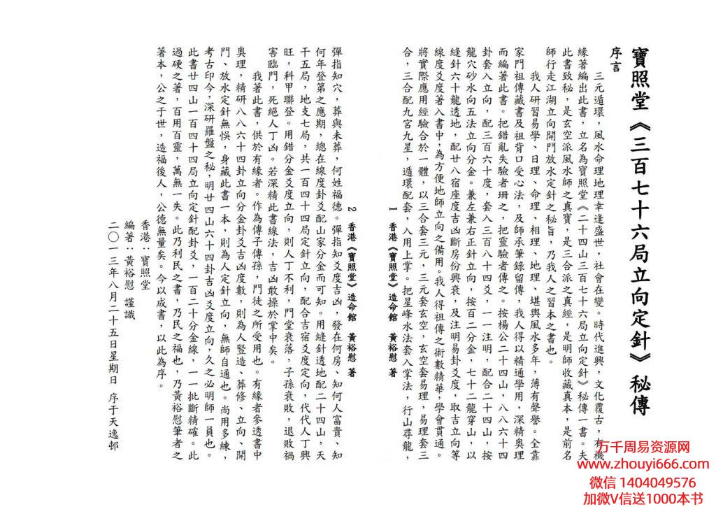 简介:三元循环,风水地理幸逢盛世。社会在变。时代进兴,文化覆古,有机缘,立名为宝照堂《二十四山三百十六局立向定针》秘传一书,是玄空派风水师之真宝,是三合派之真经,是明师收藏真本,是前名师行走江湖立向开门放水定针之秘旨,乃我人之习本之书也。