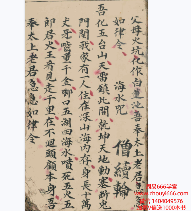 普庵祖师真传,内容:土地咒,雷神咒,殷帅咒,海水咒,封䂼碗中用令,钉棺材囗诀,解穢咒,重丧入棺,亡人犯日,普庵灵符,正宅符,肚痛符,催胎衣符,驱鬼镇邪灵符上百道